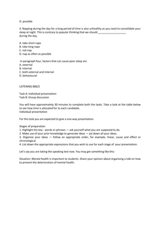 Someone says they will pass me a copy tmrw. Dikenali sebagai Task 1 dan Task 2. As you listen indicate your answers on the answer sheet.